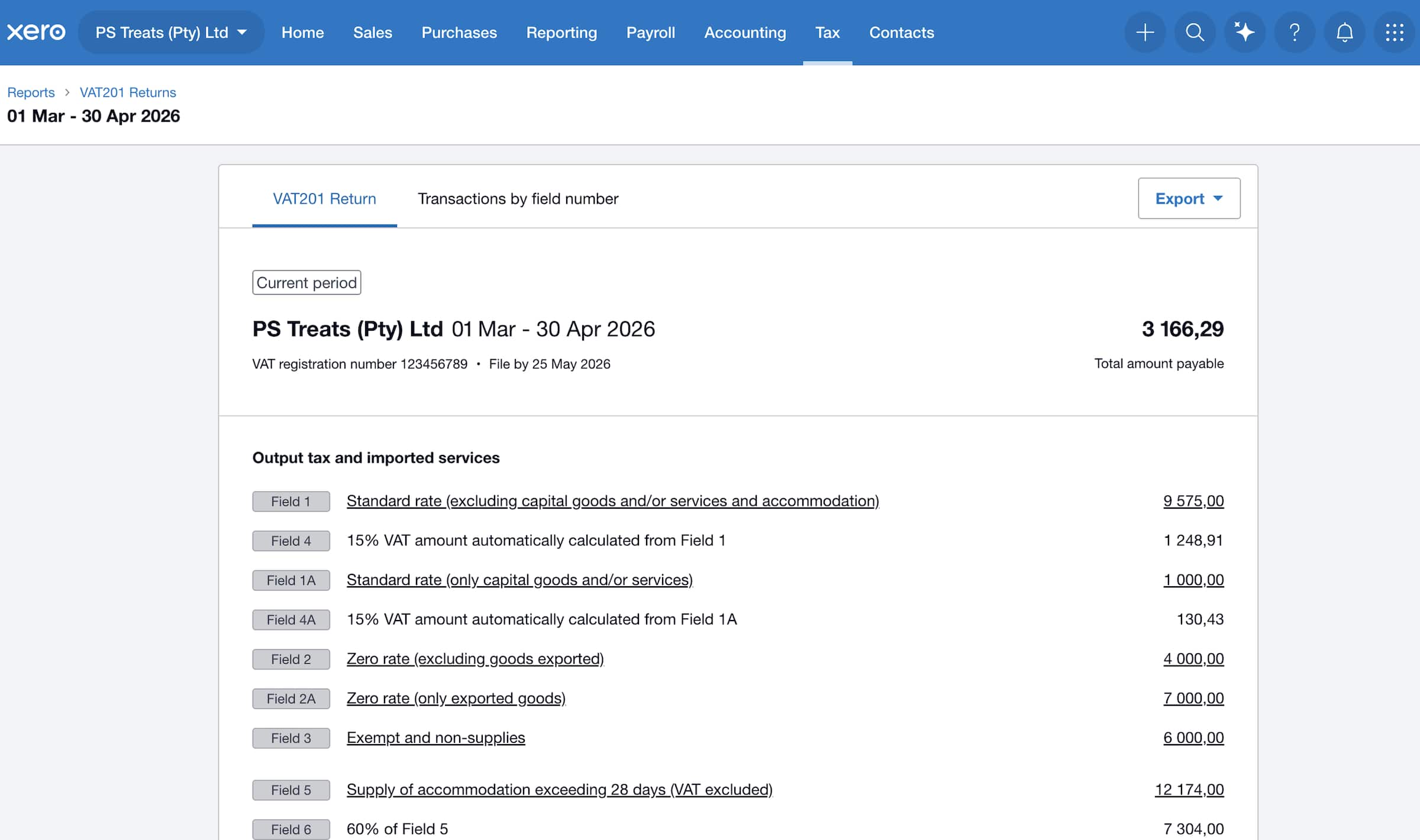 - Tax rates are mapped to the relevant fields in the VAT201 return